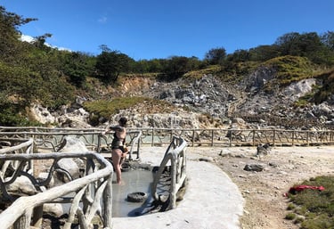 Volcano views and optional hot springs, selected locally and matched to your route.